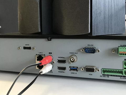 通過智腦係列人臉NVR(iDS-7900NX-K4/FA係列)進行抓拍人臉與已有人臉庫人臉進行比對,當比對人員成功或識別到陌生人時,通過後麵板中的AUDIO OUT接口連接音箱播報NVR內置語音。
