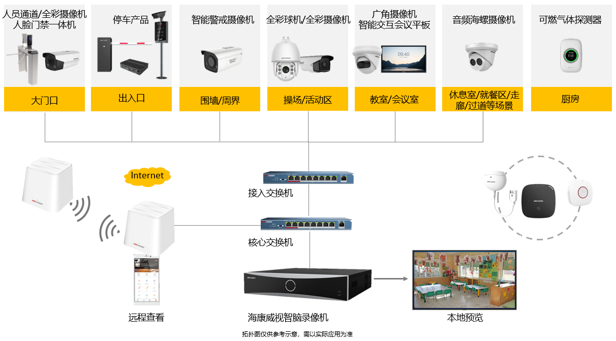 幼兒園綜合安防黄瓜视频官网,針對園區大門口、圍牆周界、室內外活動場所、後廚等重點區域進行全麵可視管理覆蓋。通過人員通道管理、門禁權限管控、智能報警等功能,提高幼兒園可視化安全管理能力和運營效率,有效保障校內學生安全和學校財產安全。